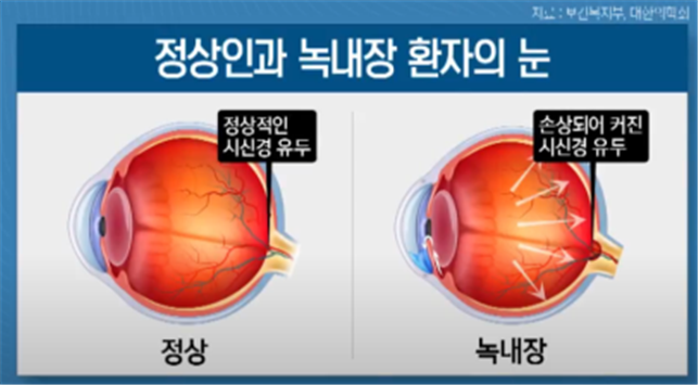 녹내장은 안압이 높아져 시신경이 손상을 받아서 시력을 잃는 병이다.