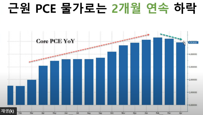 4월 근원 개인소비지출(PCE) 물가가 1년전 대비 4.9% 올랐다.