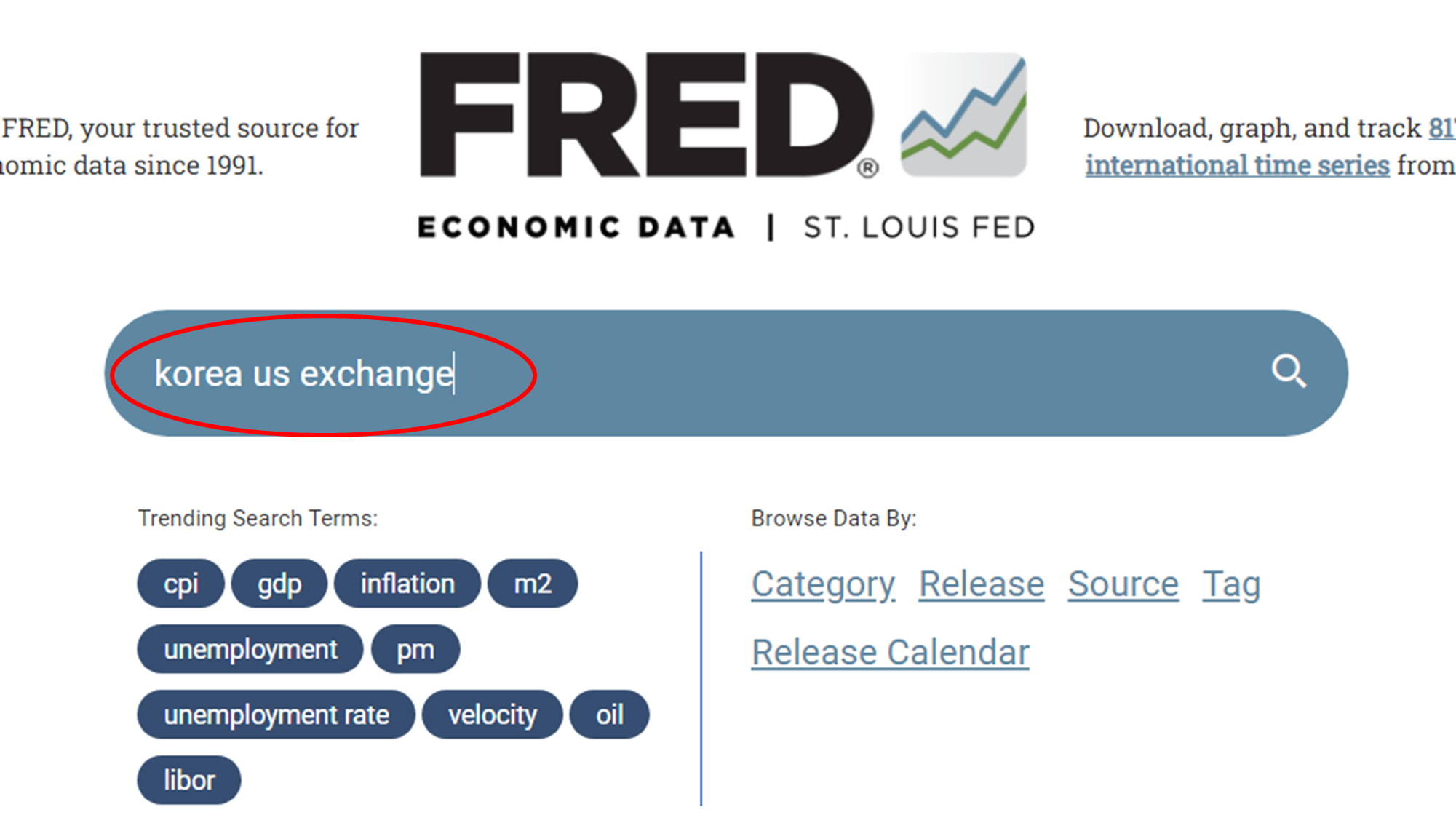 역사적인 환율 추이를 확인하기 위해서 우리는 세인트루이스 연방준비은행 홈페이지를 활용할 수 있다.