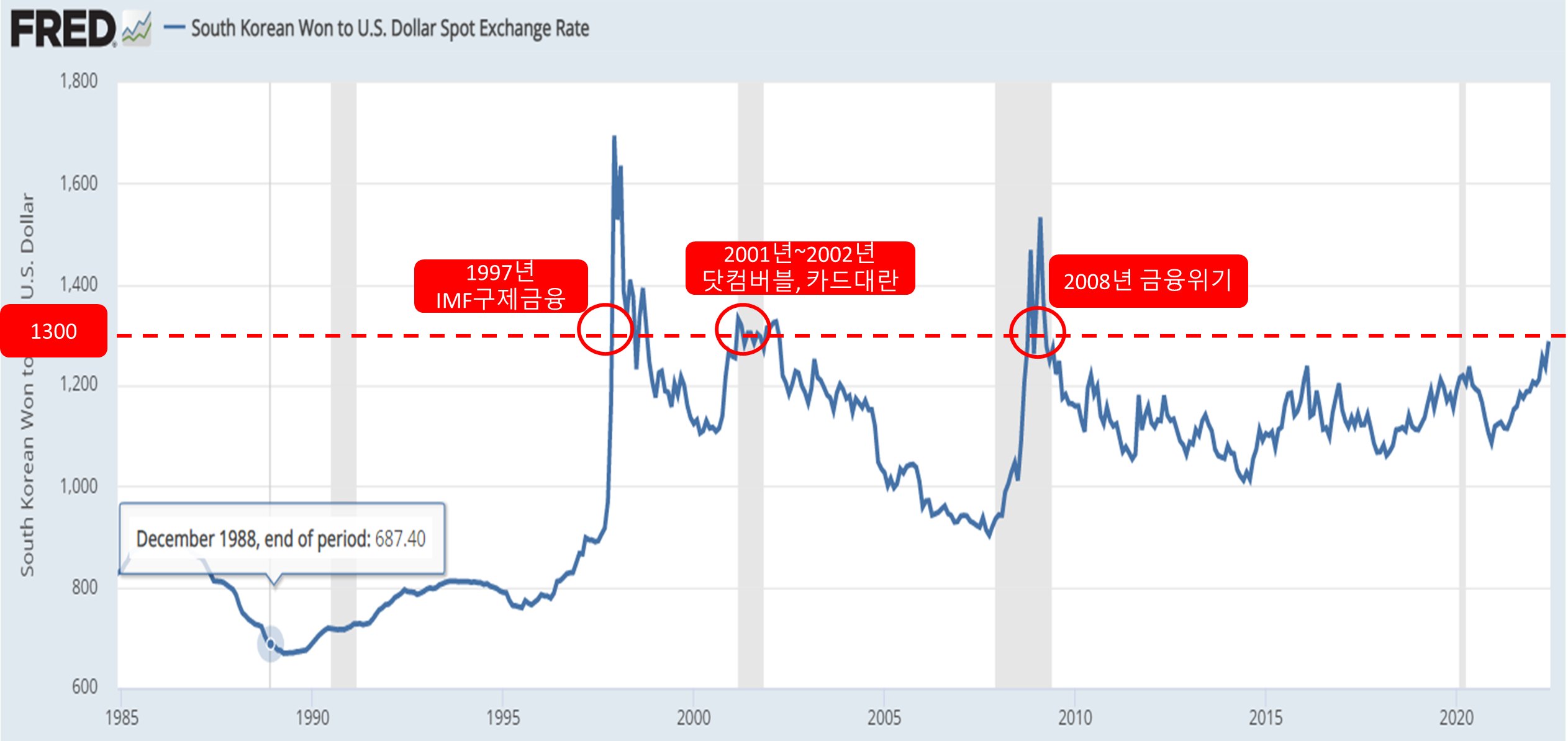 - 환율이 1300원을 돌파한 과거 사계