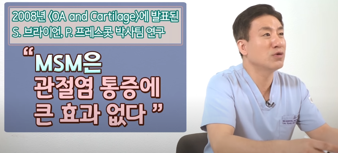 2008년 브라이언, 프레스콧 박사팀의 연구에서 'MSM이 관절염 통증에 큰 효과가 없다'는 주장을 했으며,