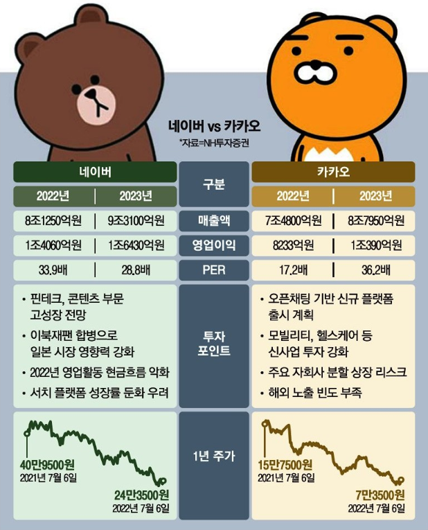 6. 너무 싸진 '네카오'...현금흐름 악화, 계열사 상장 부담 극복할까 (매일경제, 7/8)