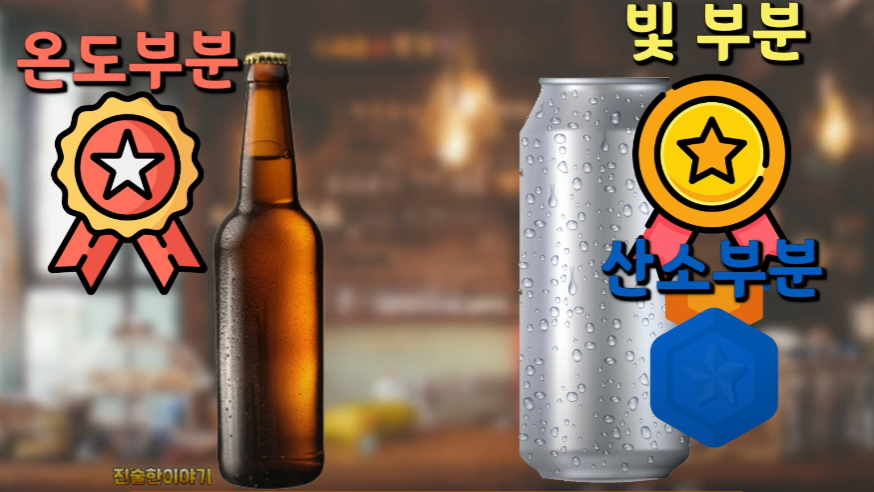 산소는 술을 빠르게 썩게 해서 여름에 먹다 남은 맥주를 하루 뒤에 먹으면 못먹는 경우를 경험해봤을 것이다. 산소의 경우도 뚜껑이 있는 병보다는 캔의 밀폐력이 더 좋아 이 부분도 캔이 더 좋은 용기라고 할 수 있다.