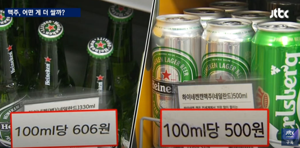 왜 이런 차이가 날까? 가격 차이의 비밀은 용기에 있다. 빈 맥주병은 재사용이 가능하기 때문에 원가를 낮출 수 있다. 여기서 말한 재사용이 가능한 맥주병이란 국내산 맥주만 말하는 것이 때문에 수입맥주의 경우는 병맥주보다 캔맥주가 더 싸다. 단, 요즘은 경쟁적으로 맥주 할인을 많이 하기 때문에 일괄적으로 믿지는 말고 용기에 따라 가격이 다르기 때문에 비교해야한다는 점만 알아두면 좋을 것 같다.