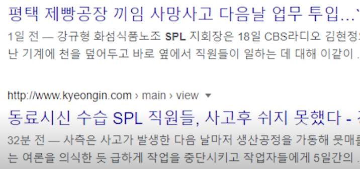 최근 SPC의 계열사인 SPL에서 손끼임 사고가 발생했다. 지난 7일, 평택에 위치한 공장에서 한 기간제 직원이 업무에 대한 설명도 듣지 못한 채 기계를 청소하다 기계에 손이 빨려 들어가는 사고가 발생했다. 그런데 이때 공장에서는 그녀를 병원으로 보내지 않고 사내에 있던 보건실로 데려갔다고 한다. 거기서 직원은 '기간제네? 기간제는 알아서 해, 파견업체에 연락은 해드릴게요, 근데 병원은 알아서 가세요' 라는 말을 했고, 다친 직원은 직접 택시를 잡아 병원에 갔다고 한다.