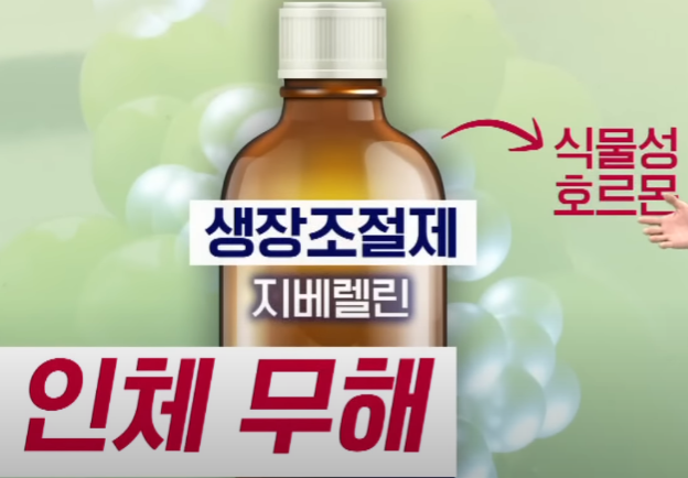 식약처에 따르면 지베렐린은 식물 자체에서 생성되는 식물호르몬이다. 에스트로겐 같은 동물성 호르몬은 사람의 생장 및 발육 저하, 정자 수 감소 등의 부작용을 일으킬 수 있지만 식물호르몬은 인체에 영향을 주지 않는다고 한다. 지베렐린은 농약 잔류 허용 기준이 없는데, 그 기준이 불필요할 정도로 안전한 물질이기 때문이다.