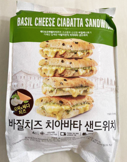 체다& 모짜렐라 치즈가 잔뜩 들어있고, 바질페스토까지 더해진 치아바타 샌드위치다. 카페에서 1개에 7~8천원하는데 여기서는 4개에 11,480원에 구매할 수 있으니 개이득이다. 맛은 카페 퀄리티의 70~80% 수준이다.