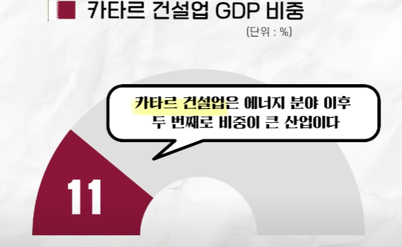 앞서 말한 것처럼 카타르는 가스, 원유 등 자원 수출로 먹고 사는 나라다. 카타르는 자원 고갈 이전에 산업을 다양하게 육성하고자 국제대회를 활용하고 있다. 우선, 카타르 건설업은 에너지 분야 다음으로 비중이 큰 산업인데, 인프라 구축을 하면서 건설업을 더 성장시키고 있다. 카타르는 사실상 도시국가이기 때문에 좁은 지역에 인프라가 집적된다. 그래서 월드컵이 끝난다고 해서 변두리에 있는 인프라가 버려지는 경우도 없다.