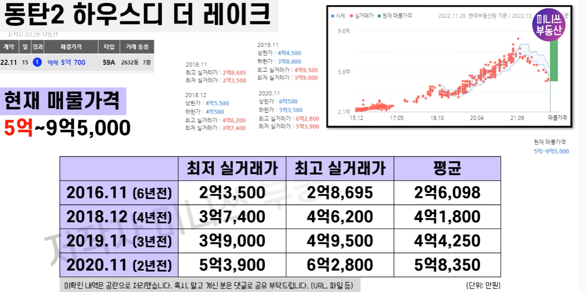 현재 매물가격은 5.2억~7.1억이며, 과거 가격과 비교하면 3년전 가격과 비슷한 수준이다.