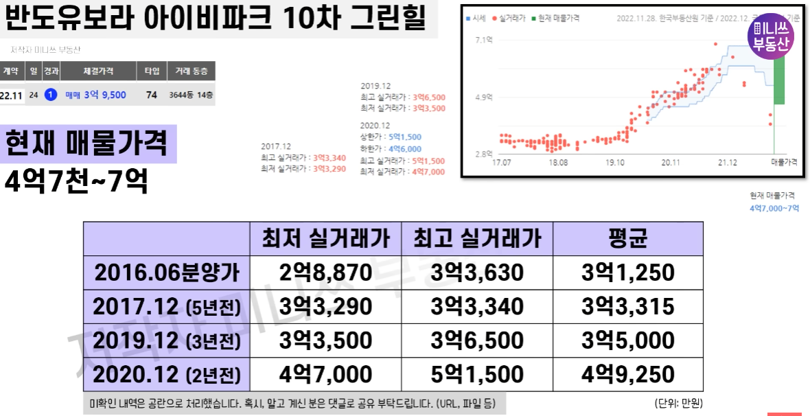 현재 매물 가격대는 4.7억~7.5억이며, 과거 가격과 비교해보면 3년전부터 가격이 급등했기 때문에 3~7년 전 가격으로 돌아갔다고 봐도 무방하다.