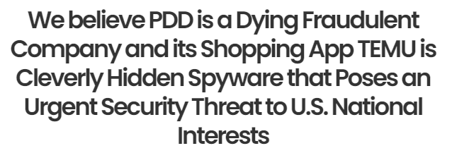 이와 관련하여, 보다 걱정되는 문제가 있다. TEMU(테무) 앱에 스파이웨어가 있다는 것이다. TEMU(테무)앱에서 특정코드가 발견되었는데, 안드로이드 앱에 관한 중요한 정보를 탈취할 수 있는 기능이 있다는 것이다. 예를 들어 앱이 실행되는 동안 카메라나 마이크에 접속하거나 앱의 코드나 그 움직임을 읽어내는 권한이 생긴다고 한다. 이에 대해 관심 있는 분은 아래 Grizzly Research의 문서를 직접 읽어보기를 추천한다.