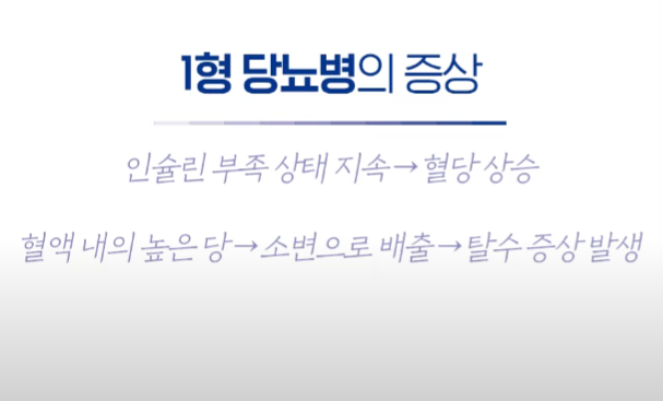 1형 당뇨병은 췌장의 베타세포가 파괴되어 베타세포에서 분비되어야 할 인슐린이 결핍되면 발생합니다. 만약 인슐린 치료를 받지 않는다면 고혈당이 악화하여 당뇨병 케톤산증과 같은 급성 합병증이 나타날 수 있습니다. 초기에 적절한 치료를 받지 못한다면 자칫 사망까지 이를 수 있어 위험합니다.