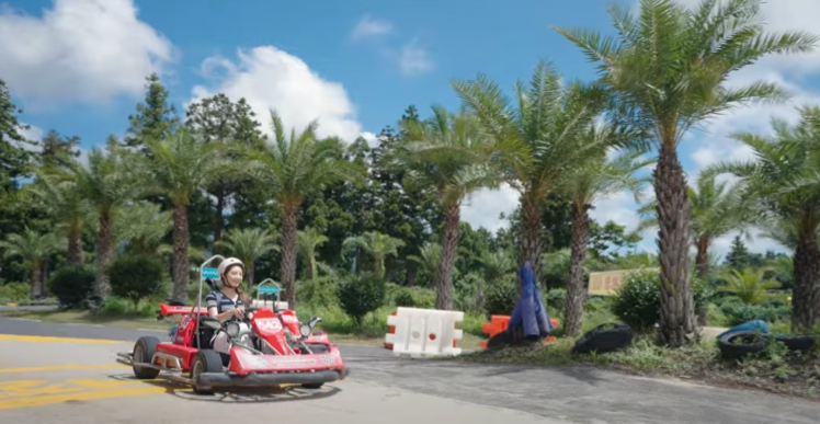 마지막은 아시아 최장트랙을 자랑하는 윈드 1947 카트입니다. 한라산 해발고도 1947m에서 따온 이름으로, 실제 트랙의 길이도 1947m나 됩니다. 체감속도는 무려 120km에 이른다고 합니다. 거센 제주의 바람을 가르마 달려가다보면 한라산 뷰를 마주하게 되는데요, 이는 주변 야자수나무와 어우러져 더욱 이국적인 느낌을 줍니다.