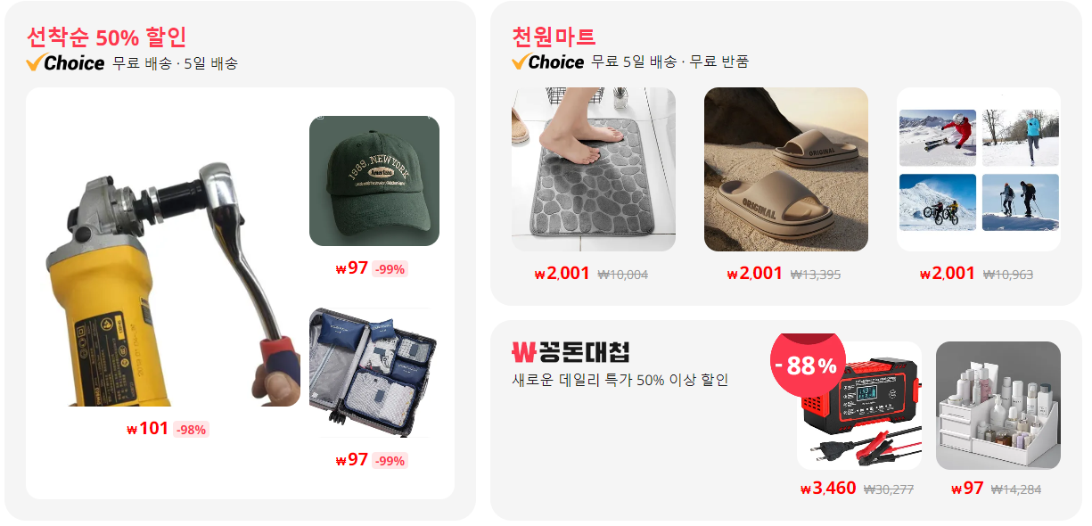 참고로, 알리익스프레스는 첫 주문 한정 프로모션도 진행하고 있습니다. 어플 가입 후 첫 주문을 하는 경우 3개 상품을 1500원 특가로 판매하고 있으니 참고하시기 바랍니다.