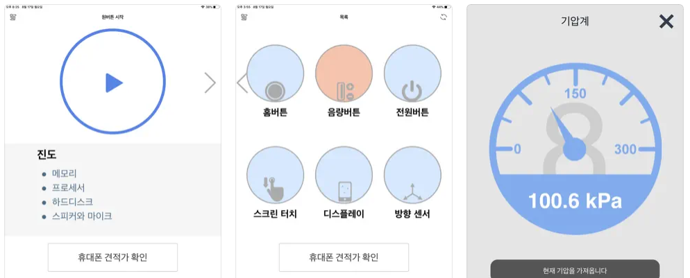 아이폰 안에는 가속도 센서, 방향센서, 근접센서 등등 수많은 부품들이 들어가있습니다. 이걸 하나하나 확인하기는 시간이 상당히 많이 걸리는데요, 이를 한번에 할 수 있는 어플이 있습니다. 바로 Qcheck 라는 어플입니다. 해당 어플을 다운받아 실행하면 하나하나씩 테스트를 시작합니다. 블루투스 기능, 근접센서, 디스플레이, 버튼, 진동, 카메라 등 거의 모든 것을 순서대로 체크해줍니다. 처음 아이폰15를 구매하신 분은 이 어플을 꼭 다운받아 실행해보시기 바랍니다.