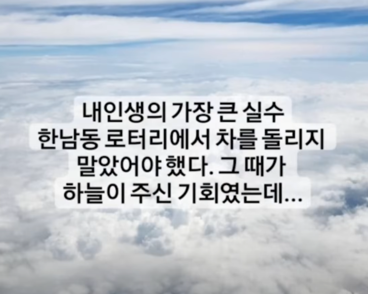 - 내 인생의 가장 큰 실수 한남동 로터리에서 차를 돌리지 말았어야 했다. 그때가 하늘이 주신 기회였는데...