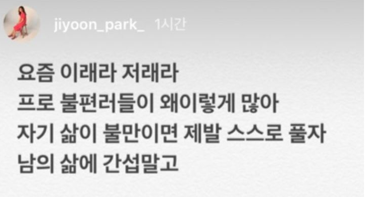 또한 이후에도 인스타를 통해 "요즘 이래라 저래라 프로 불편러들이 왜 이렇게 많아. 자기 삶이 불만이면 제발 스스로 팔자. 남의 삶에 간섭 말고."라는 글을 남기기도 합니다.
