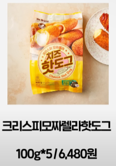 크리스피 모짜렐라 핫도그 (100g*5 / 6,480원)