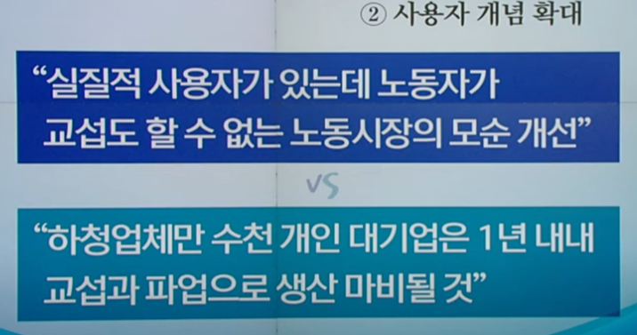 찬성 의견 : 실질적인 사용자가 있는데 노동자가 파업하지 못했던 게 노동시장의 모순이었다.