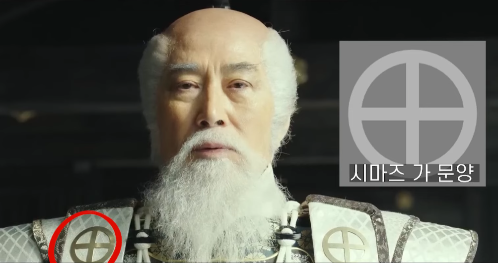 영화 노량을 제대로 즐기기 위해선 이순신에 맞서는 백윤식 배우가 연기한 '시마즈 요시히로'가 누구인지 알아볼 필요가 있습니다. 먼저 영상 속 문양을 보겠습니다. 이 문양은 12세기부터 에도시대였던 17세기 초까지 일본 곳곳의 지역에서 무가 화족으로 위엄을 떨쳤던 명문가 중의 명문가인 '시마즈' 가문의 문양입니다. (무가란, 일본사에서 군사를 관할하는 관직을 가진 가문을 총칭하는 말이며, 화족이란, 과거 일본에 존재했던 귀족 계급을 말합니다.)