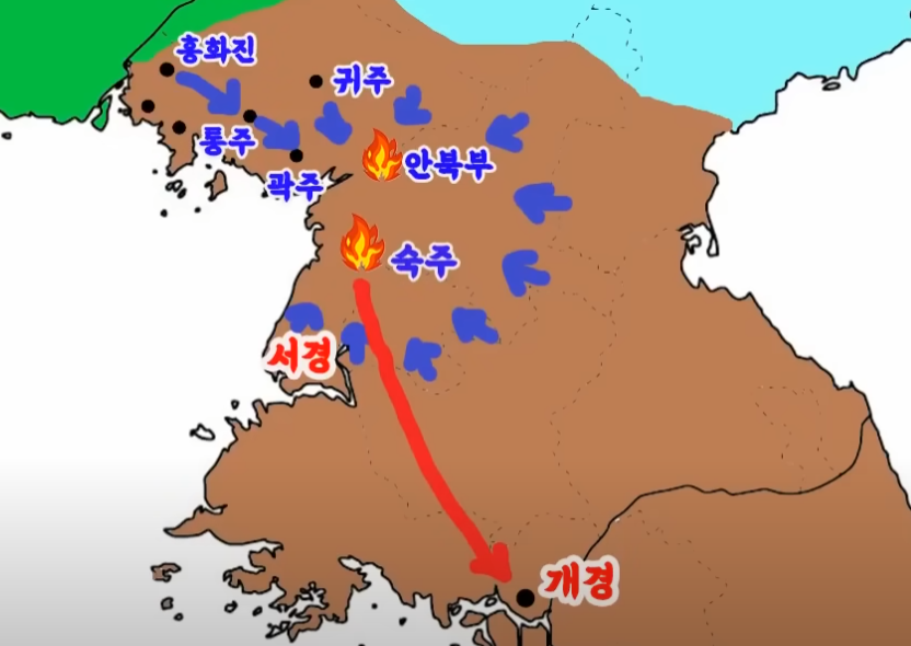 이후 요나라는 통주성을 공격했으나 함락에는 실패합니다. 그러자 요나라는 통주성을 포기하고 곽주성을 공격하여 함락시킨 뒤 군사 6천명을 잔류시켜 수비하도록 합니다. 그리고는 계속 남하하여 고려 제2의 수도인 서경을 공격합니다.
