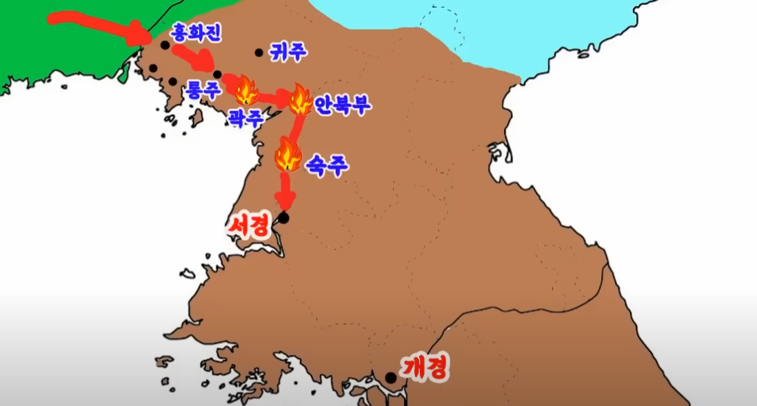 이후 요나라는 통주성을 공격했으나 함락에는 실패합니다. 그러자 요나라는 통주성을 포기하고 곽주성을 공격하여 함락시킨 뒤 군사 6천명을 잔류시켜 수비하도록 합니다. 그리고는 계속 남하하여 고려 제2의 수도인 서경을 공격합니다.