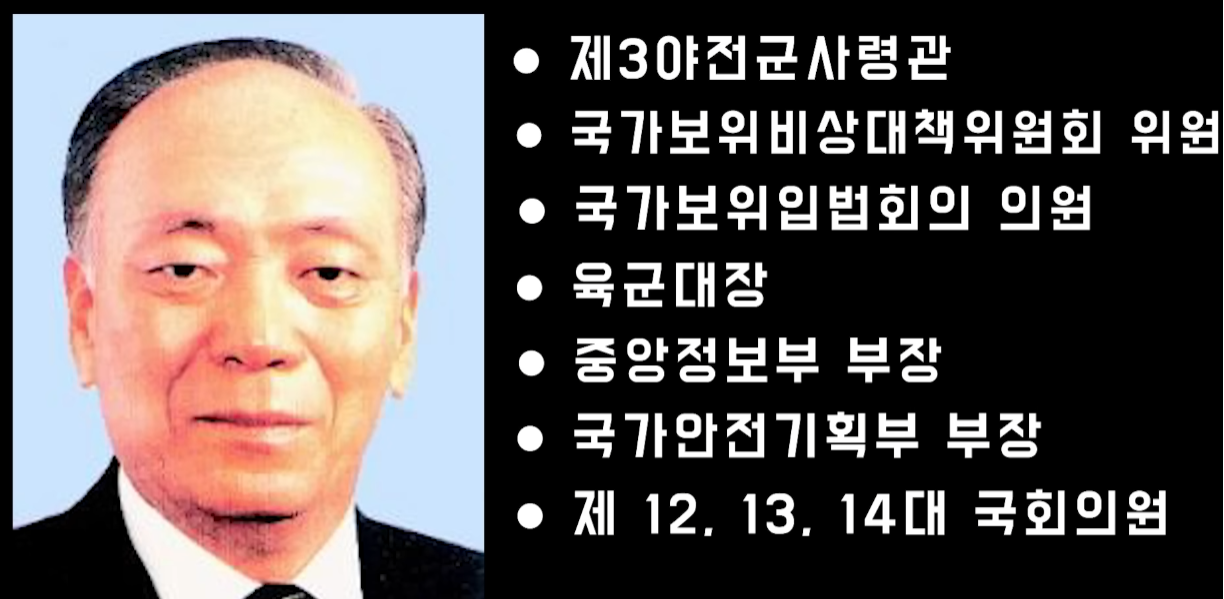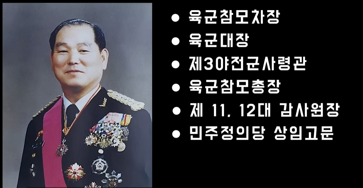 신군부 세력 중 전두환보다 선배였던 유학성 중장, 차규헌 중장을 비롯한 3인 중 1인입니다. 전두환, 노태우와 함께 신군부 핵심 5인 중 1인이기도 합니다. 쿠데타 직후 육군참모차장을 역임하였으며, 1980년 육군대장으로 진급합니다. 제3야전군사령관을 거쳐 육군참모총장에 올랐습니다. 제11, 12대 감사원장, 민주정의당 상임고문 겸 당무위원을 지내기도 했습니다.