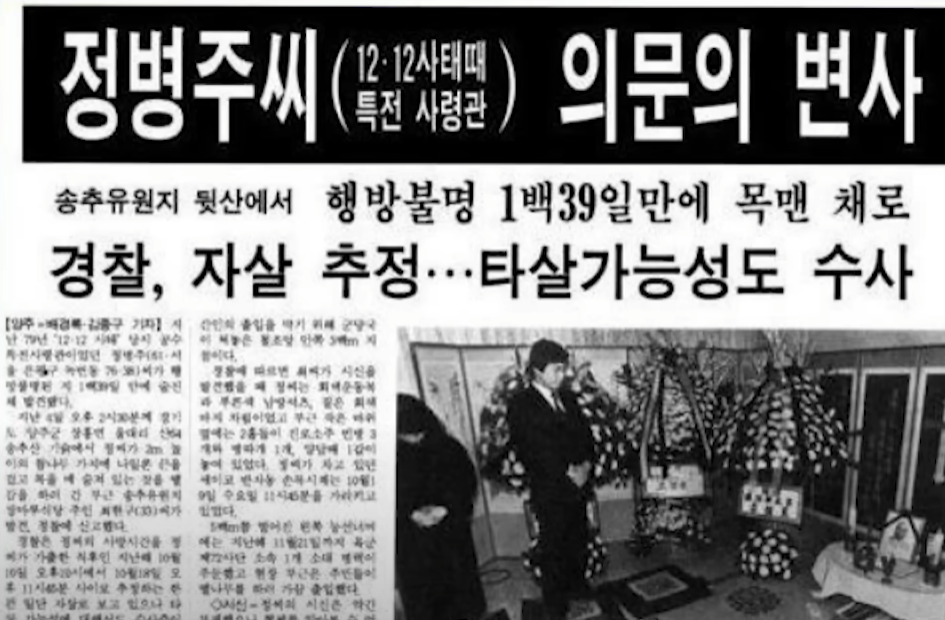정병주 역시 정승화, 장태완과 마찬가지로 강제예편을 당했으며, 지속적으로 군사반란에 대한 부당성을 주장해왔습니다. 하지만 1989년 3월, 경기 고양시의 산에서 변사체로 발견됩니다. 정병주 사령관의 죽음은 군 당국에 의해 자살로 처리되지만, 그의 주변 인물과 장태완은 그가 자살할 사람이 아니라며 자살을 부인합니다. 민주화 이후 재조사가 이루어졌음에도 증거가 거의 남아있지 않은 상태여서 결국 의문남을 남긴 채 자살로 종결됩니다.