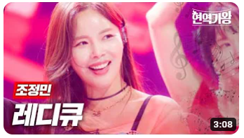 6위 암을 이겨내고 무대에 올라 프로미를 제대로 보여준 조정민의 '레디큐'로 조회수는 9.6만입니다. 대단한 가창력과 퍼포먼스였는데 점수가 그에 미치지 못해 조금 아쉬웠던 무대였습니다. 13점을 기록했습니다.