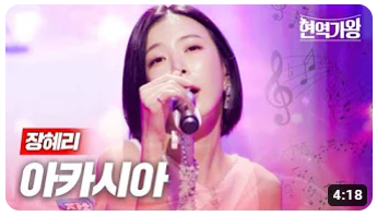 12위는 섹시미를 제대로 뽐낸 장혜리의 '아카시아'입니다. 조회수는 3.6만입니다. 어여쁜 얼굴과 몸매에 댄스와 매력적인 보이스가 합쳐진 완벽한 무대였습니다. 자체평가로 점수를 많이 받지 못한게 아쉬울 뿐입니다. 13점을 기록했습니다.