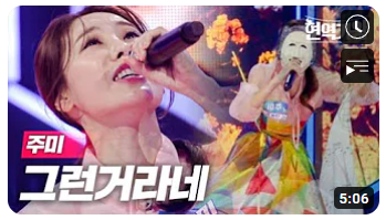 5위는 시청자들의 눈물샘을 자극했던 주미의 '그런거라네', 조회수는 10만입니다. 인생은 희로애락의 예술이라는 것을 알게 해준 무대입니다. 25점을 기록했습니다.