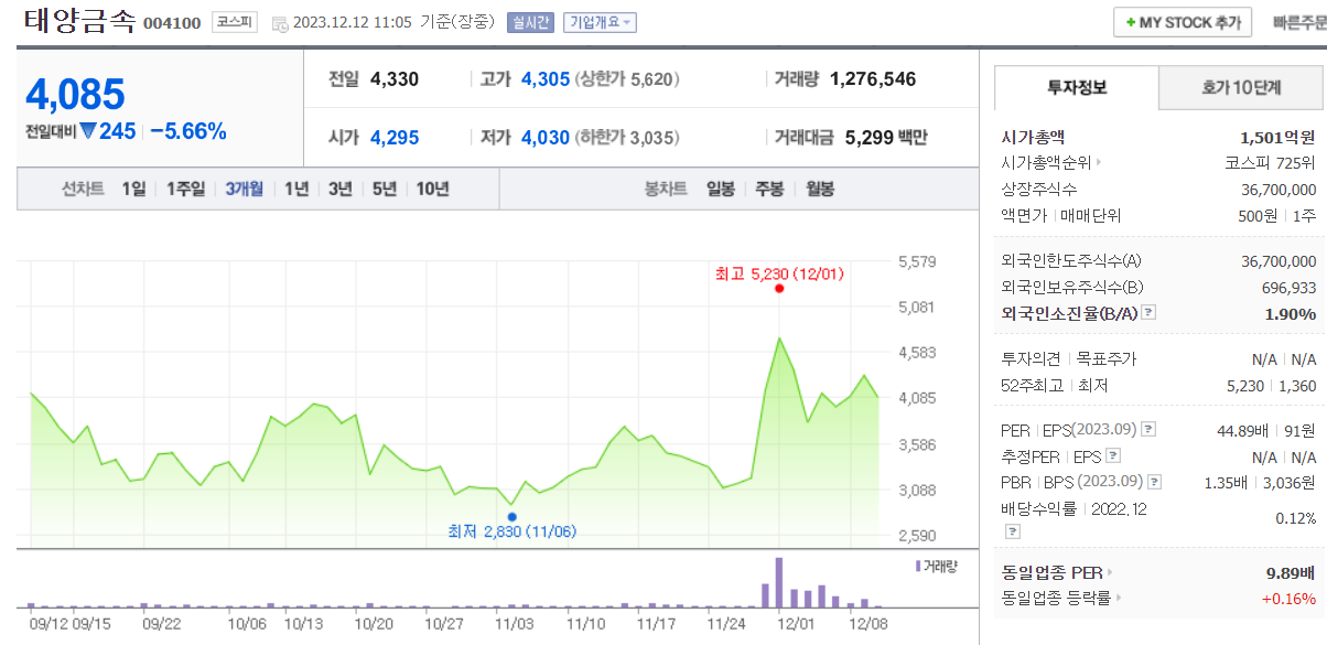 태양금속은 한우삼 회장이 한 장관과 같은 청주 한씨라는 이유로 급등한 적이 있습니다. 한동훈 장관이 국회에서 "제가 어릴 때 청주에 살아서 사투리가 좀 나올 수 있다"는 발언을 한 적이 있습니다. 이것을 두고 한동훈 장관이 총선에 출마한다면 청주 흥덕이 될 것이라는 예측이 있는데요. 이렇게 된다면 다시 한번 청주 한씨가 회장으로 있는 태양금속이 급등할 수도 있을 것입니다.