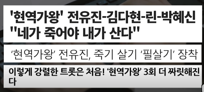 아래는 <현역가왕> 3회, 현장지목전 데스매치 결과를 정리한 글입니다.