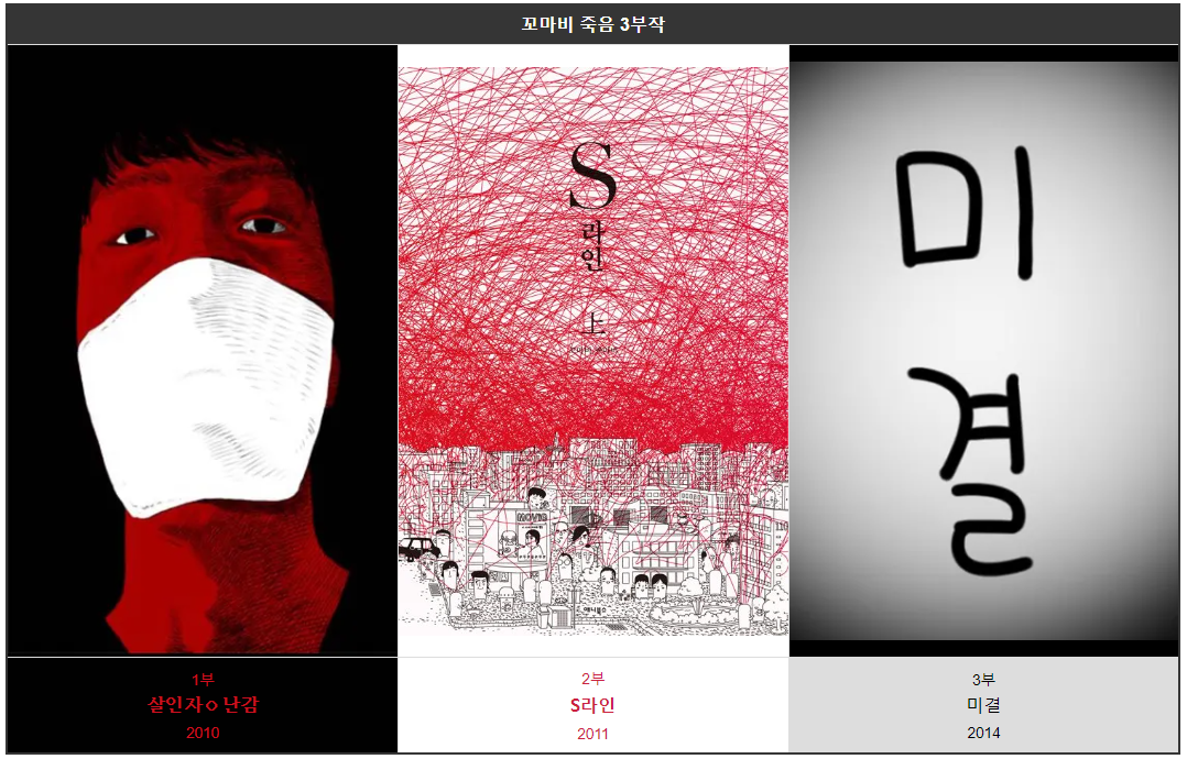 <살인자ㅇ난감>은 웹툰 작가 '꼬마비'의 죽음 3부작 중 첫 작품입니다. 1부는 <살인자ㅇ난감>, 2부는 <S라인>, 3부는 <미결>입니다.