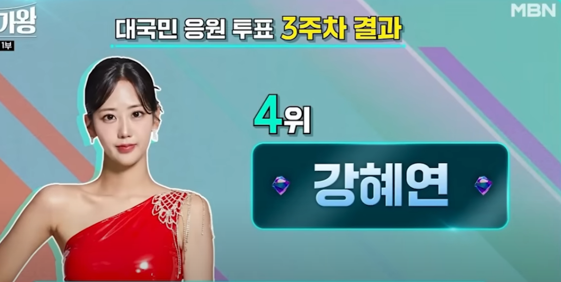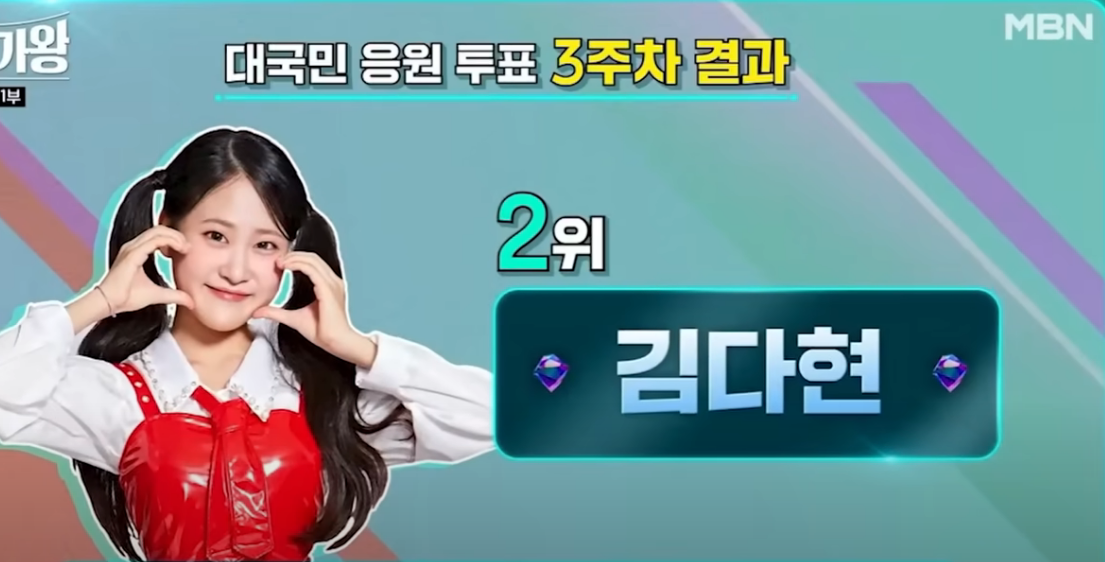 4위는 강혜연, 3위는 마리아, 2위는 김다현이 각각 차지하였습니다. 이들은 1차, 2차 투표에서와 순위가 모두 그대로입니다.