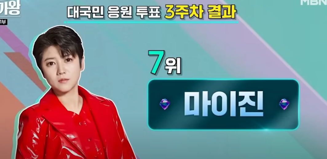 반면에 박혜신, 마이진, 반가희, 별사랑 등은 초반에는 순위 밖이거나 후순위였는데 실력으로 국민들의 마음을 사로잡아 순위가 올라가고 있는 모습입니다.