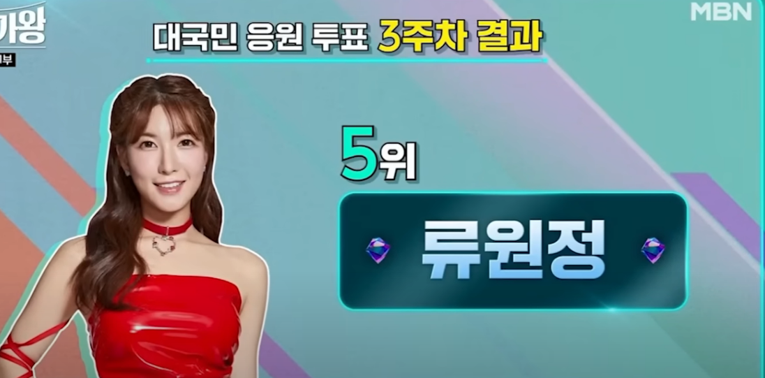 5위는 류원정으로, 2차 투표때와 순위 변동이 없습니다.