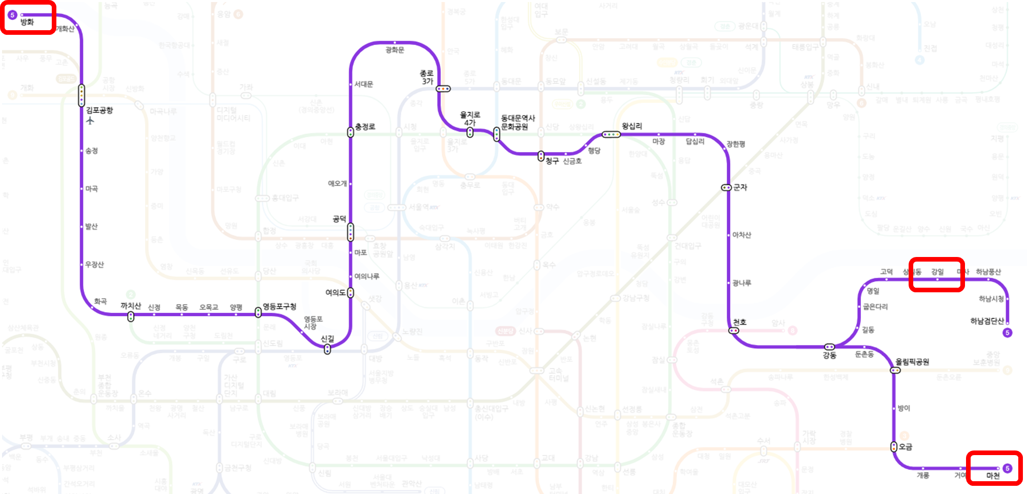 전구간 이용 가능 : 2호선, 6호선, 8호선, 9호선, 우이신설선, 신림선