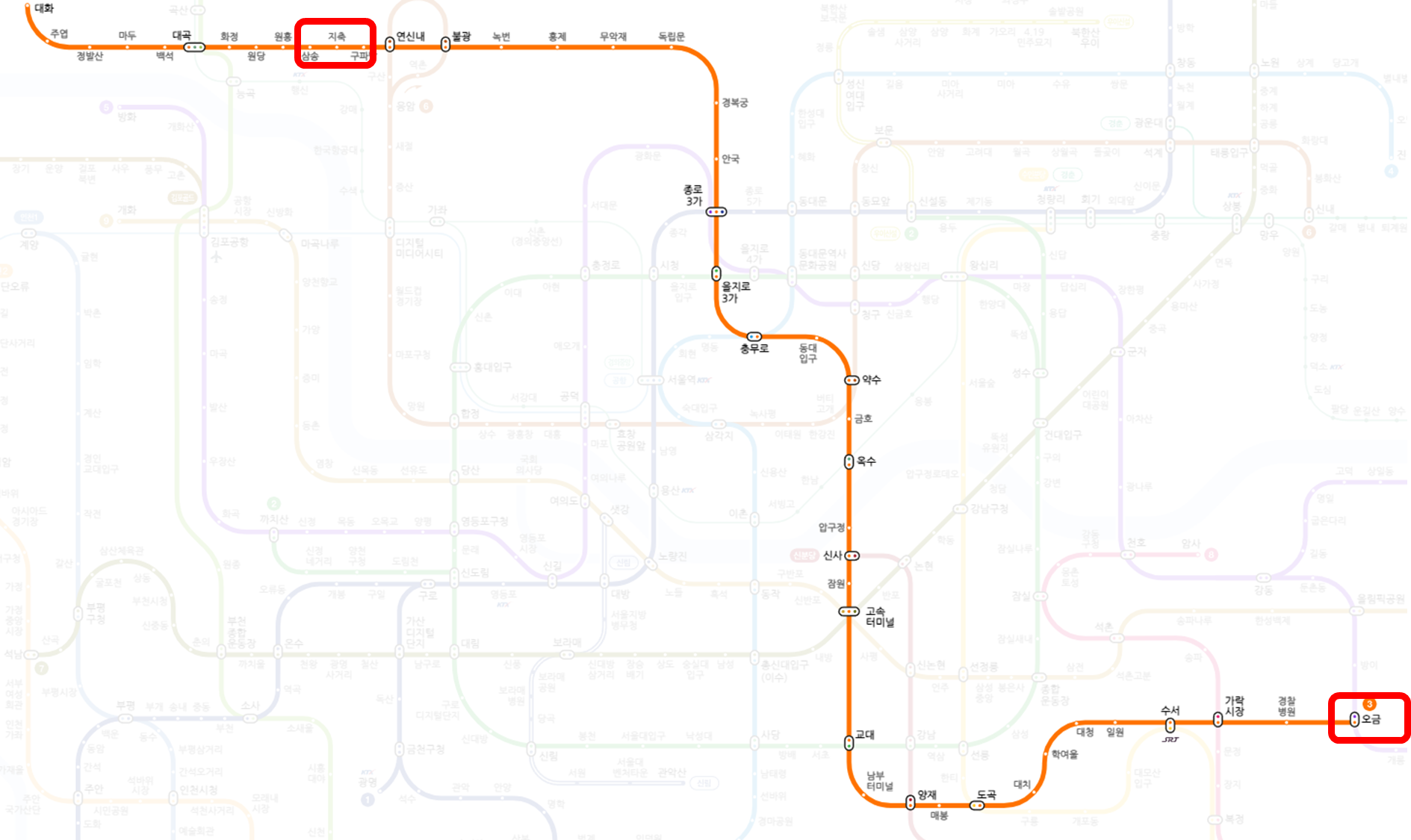 3호선은 지축부터 오금까지에서의 구간에서만 이용하실 수 있습니다. 따라서 대화-주엽-정발산-마두-백석-대곡-화정-원당-원흥-삼송 역을 이용하시는 분들은 카드를 이용할 수 없습니다. (아래 노선도를 클릭하여 확인↓)