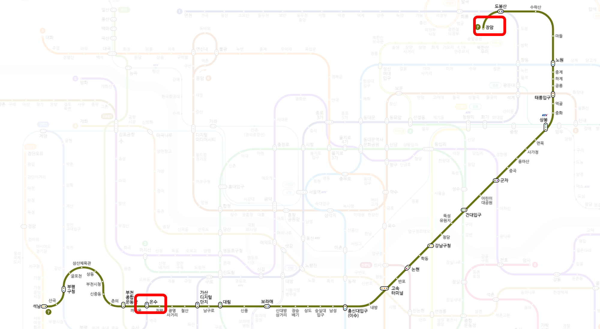 7호선은 온수에서 장암까지의 노선에서만 사용이 가능합니다. 따라서 '석남, 부평구청, 부천시청, 부천종합운동장' 등에서는 사용이 불가능합니다. (아래 노선도 클릭하여 확인↓)