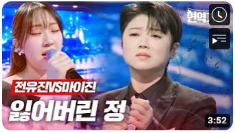 다음은, 7회의 하이라이트 마이진과 전유진의 대결이었습니다. 이들은 '잃어버린 정'을 선곡했는데요, 전유진이 130점, 마이진이 230점을 받는 반전 결과로 현장을 놀라게 했습니다.