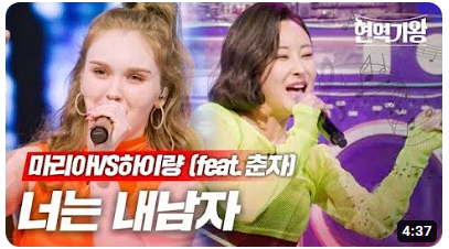 마리아와 하이량은 '너는 내 남자'를 선곡했는데, 형형색색의 디스코 의상을 입고 나와 파격 무대를 선보였습니다. 마리아가 245점, 하이량이 115점을 기록해 마리아가 다음 라운드에 진출했습니다.