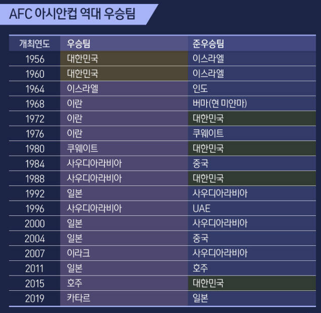▶ 역대 아시안컵 기록 확인하기 ◀