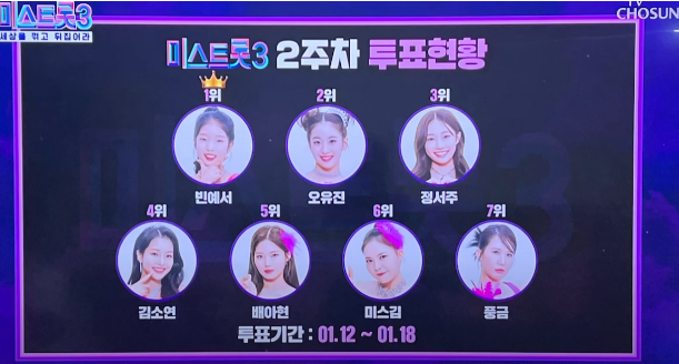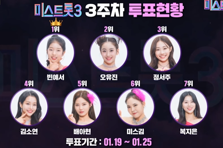 미스트롯3 인기순위 국민투표 결과 (9회-6주차)