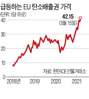 많은 국가들이 탄소 배출 제로에 동참하면서 탄소 배출권의 가격이 올라가고 있고, 이