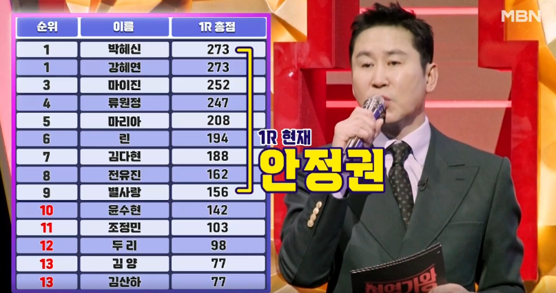 공동1위 박혜신, 강혜연 273점, 3위 마이진 252점, 4위 류원정 247점,