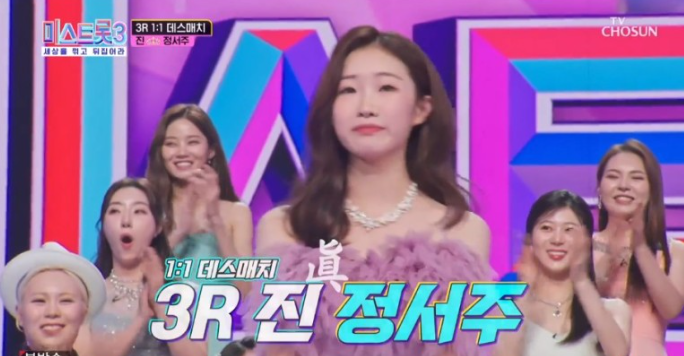 3라운드 경연 최종 결과 1위 진은 정서주, 2위 선은 윤서령, 3위 미는 오유진이 선정되었습니다. 그리고 4위는 양서윤, 5위는 복지은이 차지했습니다.