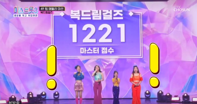 복드림걸즈는 트위스트, 니, 청춘을 돌려다오, 황진이, 청춘열차를 열창했습니다. 복드림걸즈는 1221점을 획득했습니다.