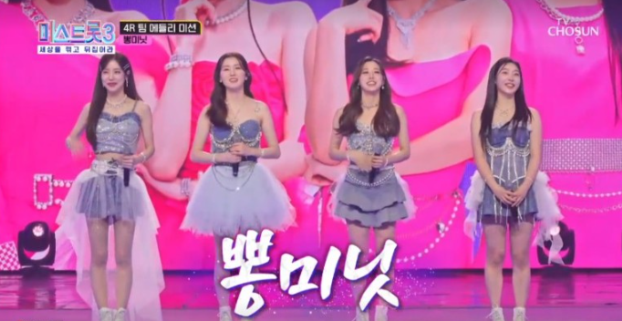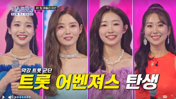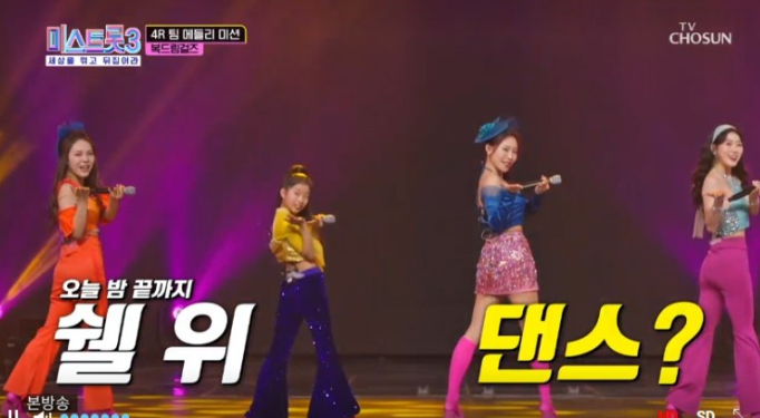 다음 팀은 정서주, 배아현, 김소연, 정슬로 구성된 '뽕커벨' 팀입니다. 첫곡만 부르고 7회가 끝이났습니다.
