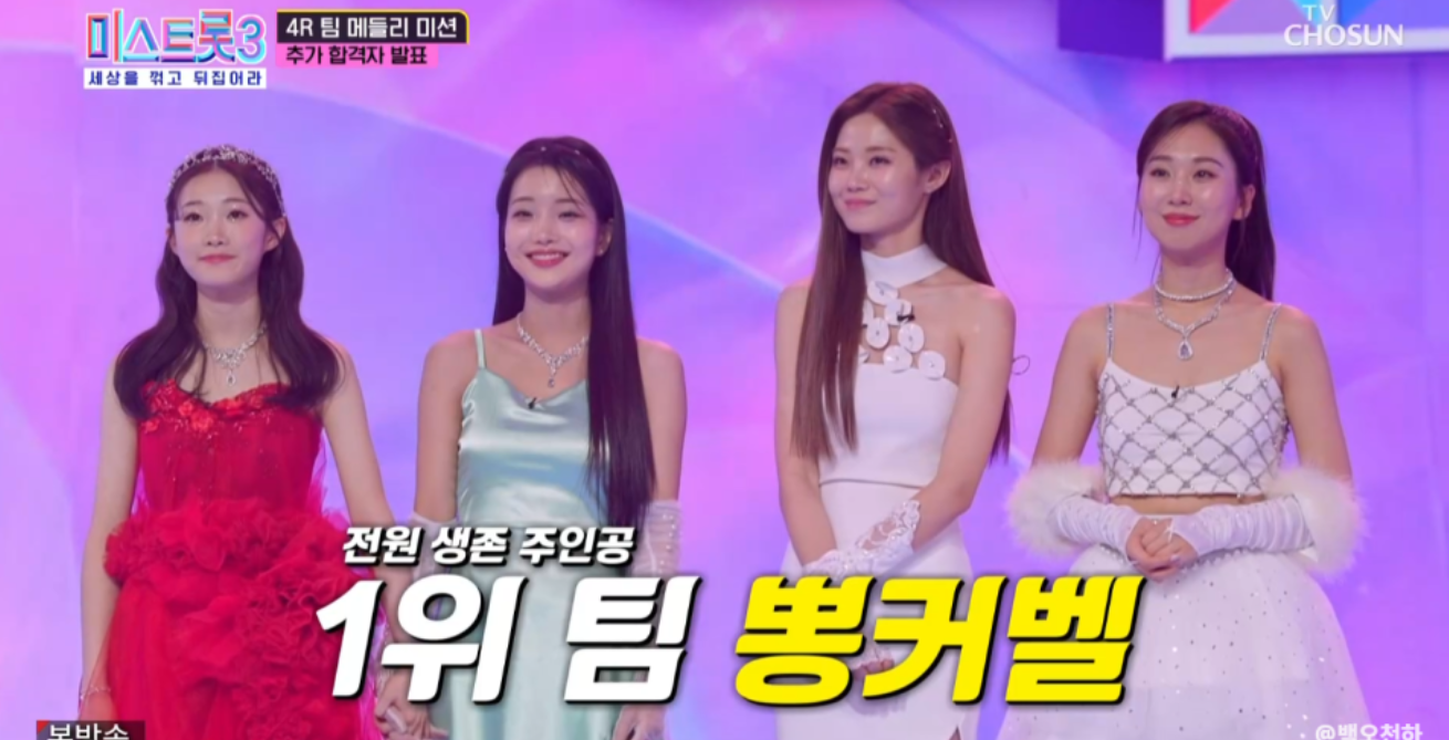 4라운드 1위를 차지한 뽕커벨팀 ' 정서주, 김소연, 배아현, 정슬 ' 4명은 모두 5라운드에 진출했습니다.